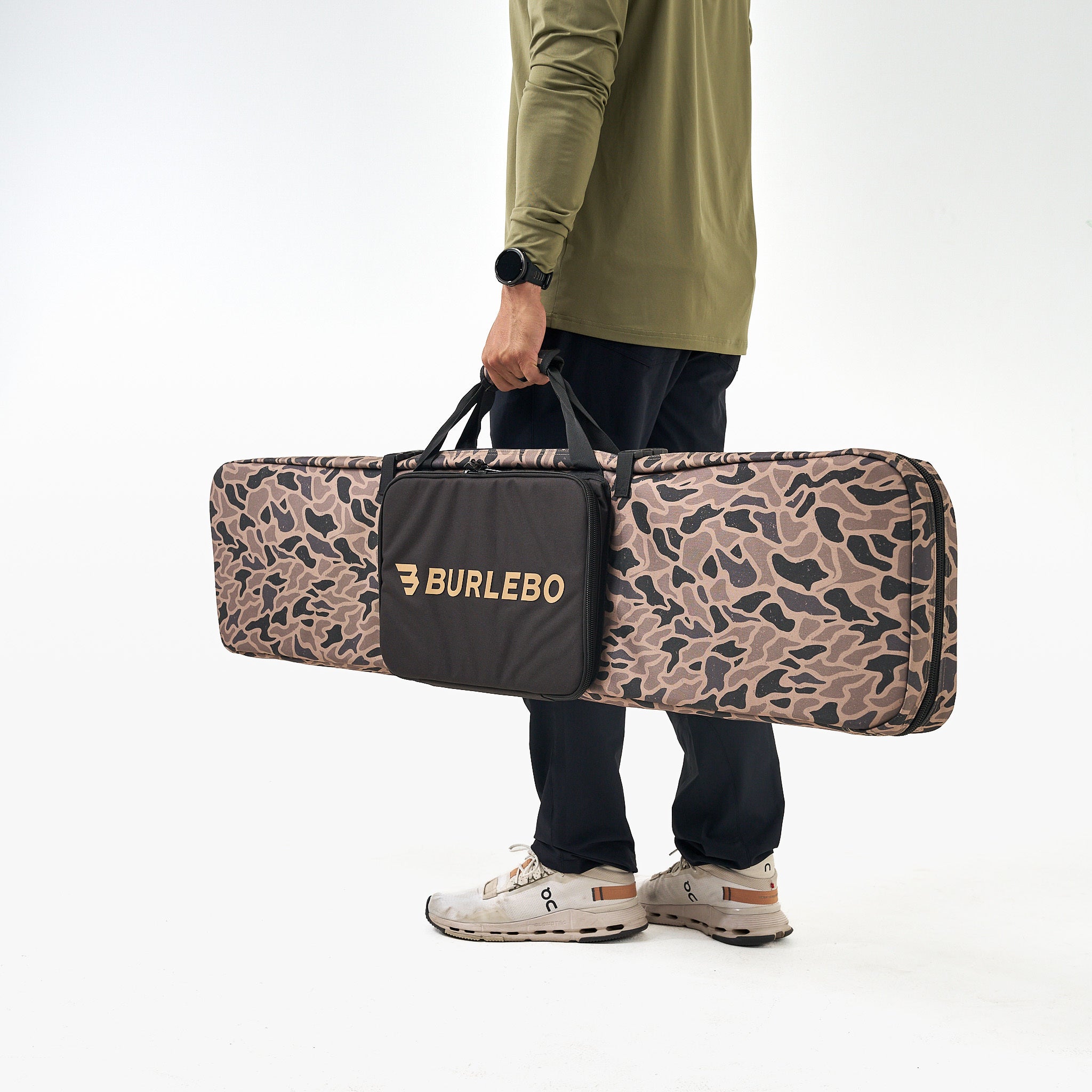 BURLEBO ® Double Rifle Case – Heavy Duty Construction. Capable of holding two guns. Tough Abrasion and Water Resistant. Main zippered dual-rifle compartment features two padded sides with hook and loop straps and removable center pad. Two-way zipper main compartment allows rifle case to open and lay flat easily. Zippered front pocket features two internal zippered mesh storage pockets and one elastic-opening mesh suppressor pocket. Back webbing bar tacked strips and two padded back handles provide external attachment/carry options. Large zipper pulls. padded top handle. two top-closure buckles. padded bottom and sides.
