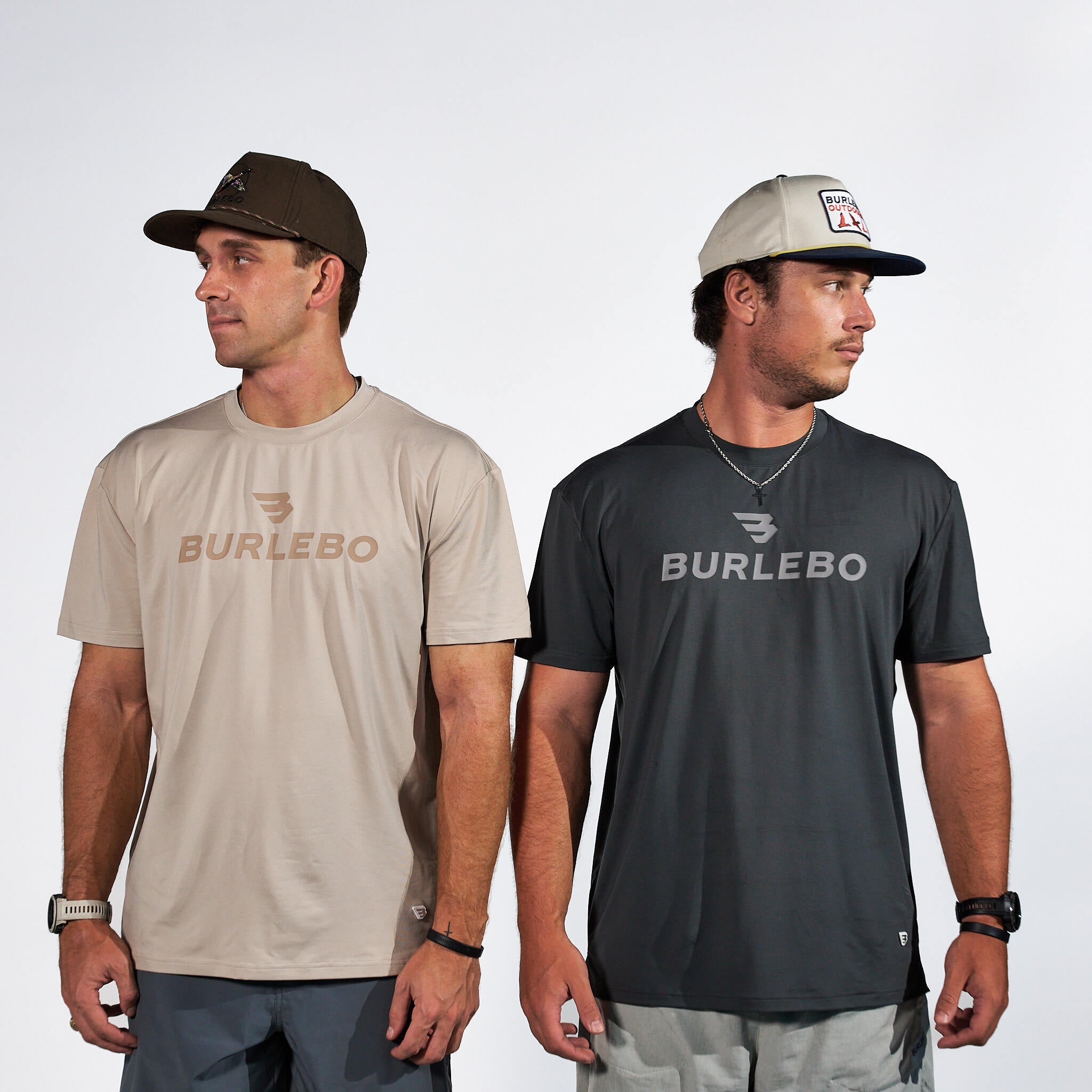 Model on the left is 6’0 and 185lbs wearing a size large