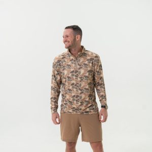 Performance Quarter Zip. the ultimate fusion of style and functionality. A blend of 91% Polyester and 9% Spandex. this quarter zip delivers lightweight performance with every wear. The quarter zip design allows for easy on and off. while providing customizable ventilation to keep you comfortable in any temperature. Featuring UPF 50 sun protection. this quarter zip is your go-to choice for outdoor activities under the sun. The quick-dry. moisture-wicking. and antimicrobial properties ensure you stay dry. fresh. and comfortable throughout your day.