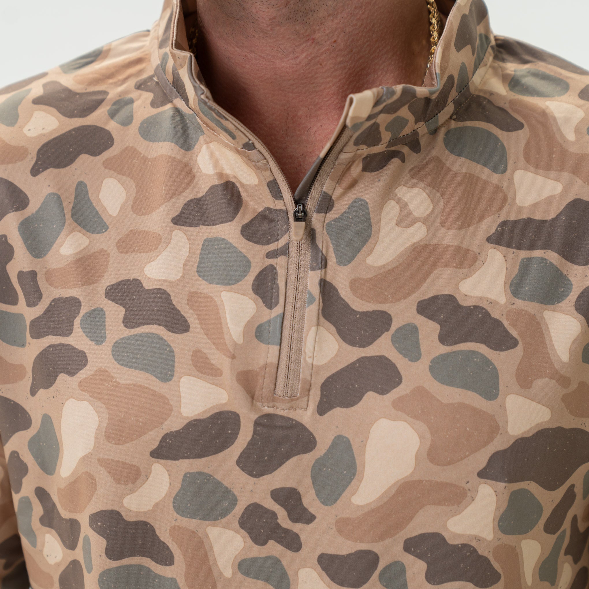 Performance Quarter Zip. the ultimate fusion of style and functionality. A blend of 91% Polyester and 9% Spandex. this quarter zip delivers lightweight performance with every wear. The quarter zip design allows for easy on and off. while providing customizable ventilation to keep you comfortable in any temperature. Featuring UPF 50 sun protection. this quarter zip is your go-to choice for outdoor activities under the sun. The quick-dry. moisture-wicking. and antimicrobial properties ensure you stay dry. fresh. and comfortable throughout your day.