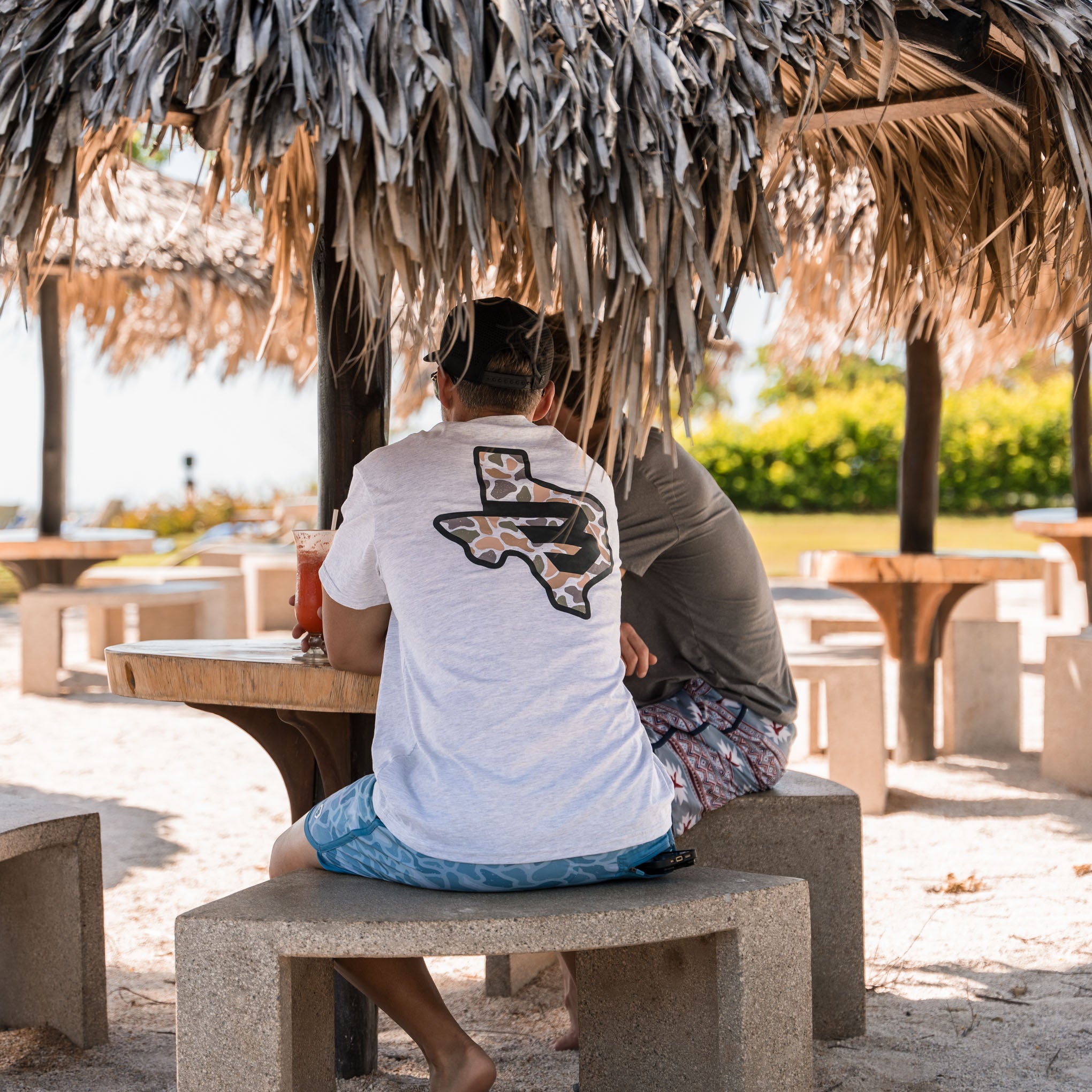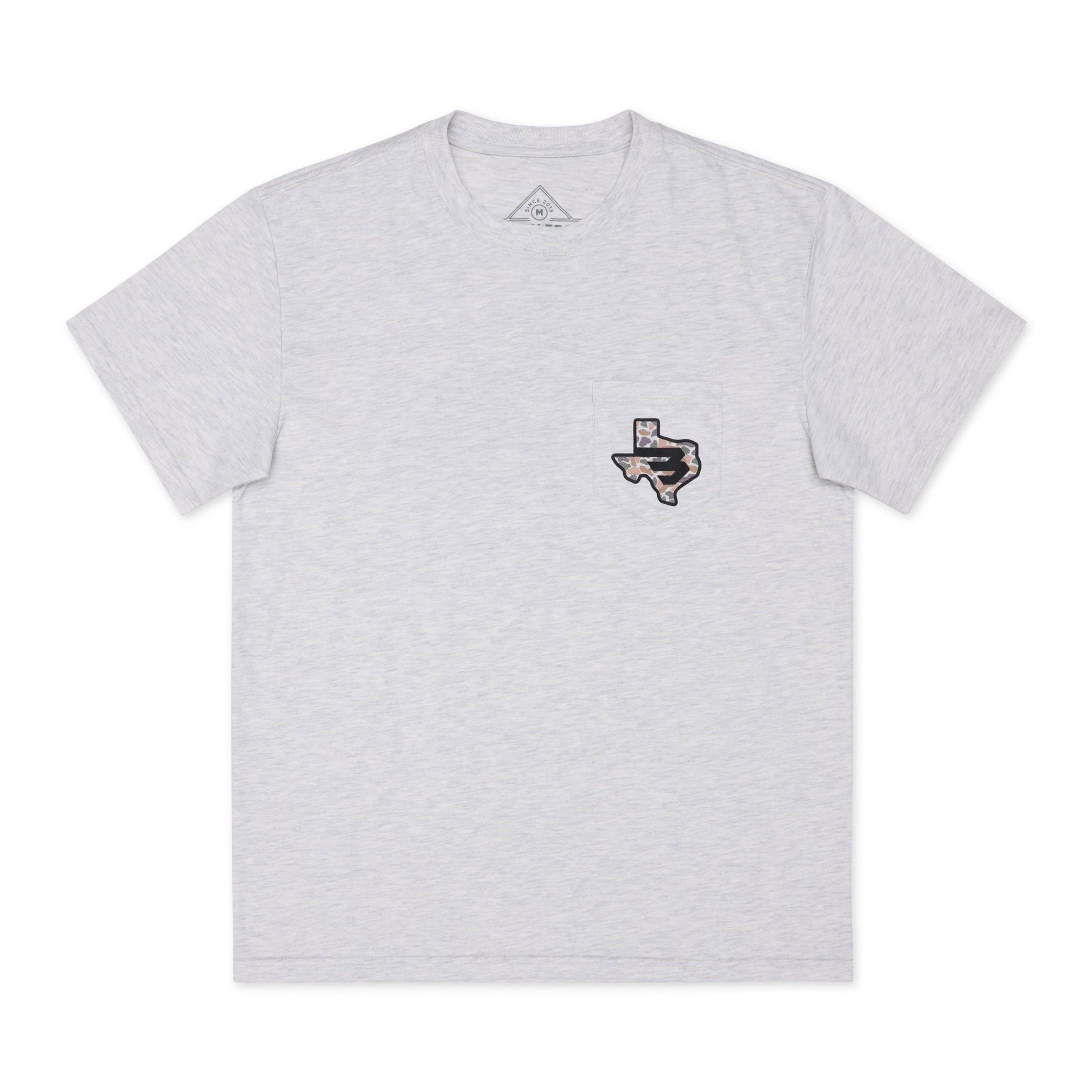 Short Sleeve Tee – Texas Camo Flying B Logo – Heather Ash Grey
