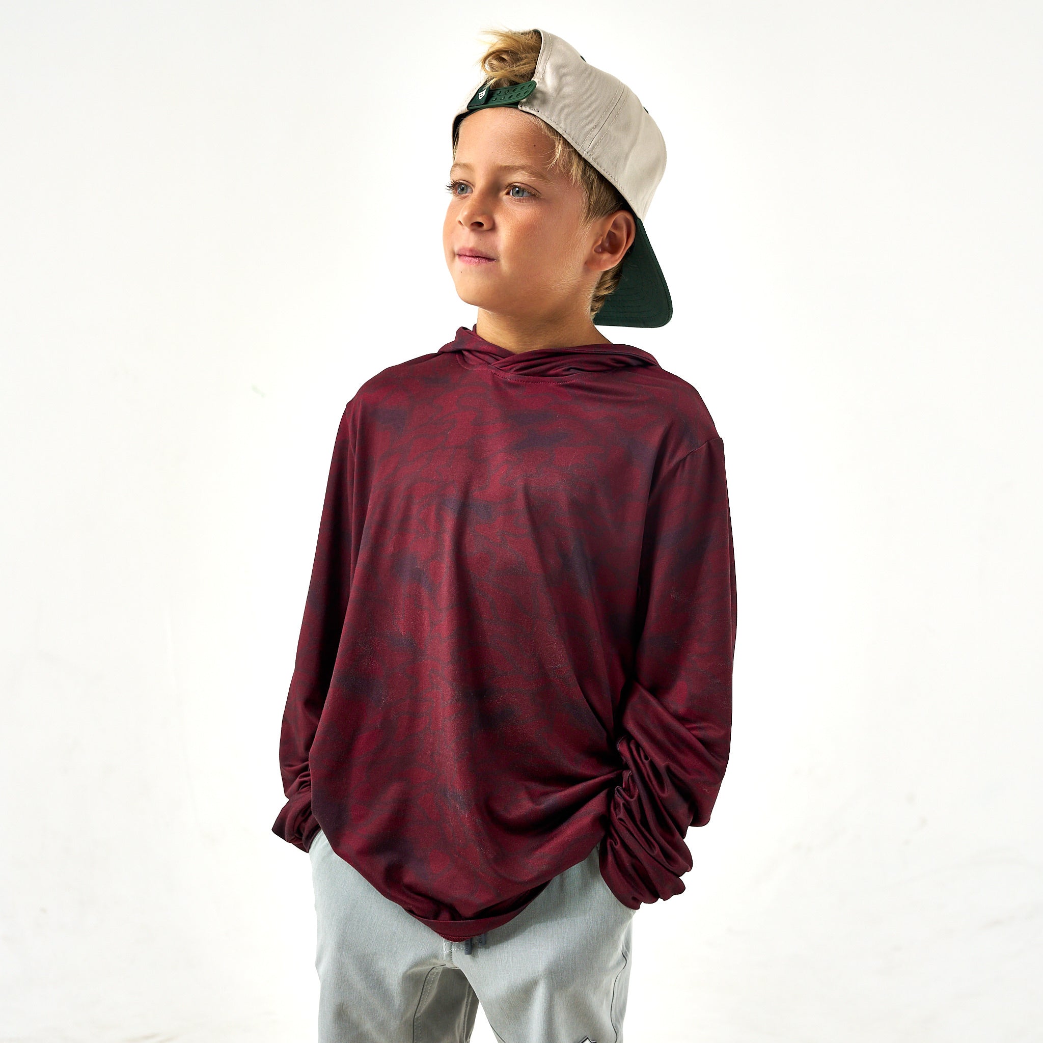 Youth Performance Hoodie – Maroon Texas Camo